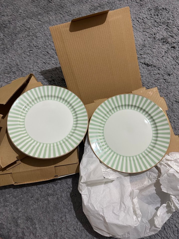 H&M HOME YEŞİL ÇİZGİLİ PASTA TABAK