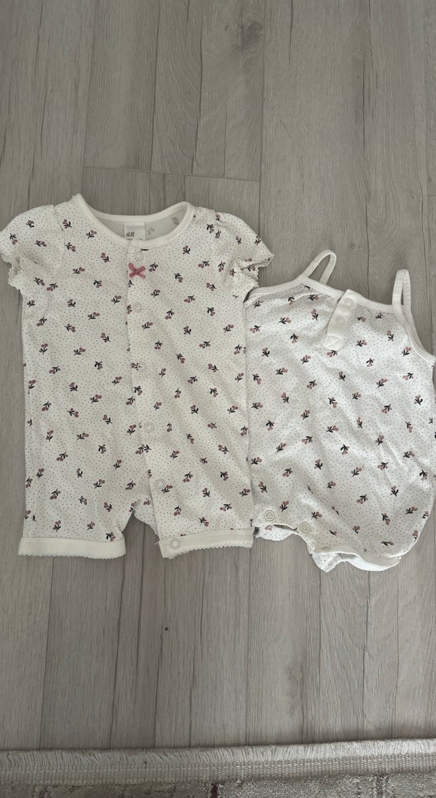 H&M ikili yeni doğan bebek tulum şortlu kısa kollu ve sıfır kollu