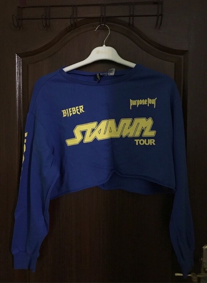 H&M Justin Bieber Mavi Uzun Kollu Crop Sweatshirt