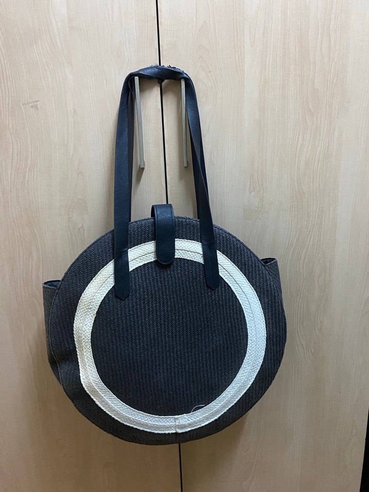 Çantanın sadece sap kısmında defosu vardır gösterdiğim gibi kolayca tamir edilebilir ben uğraşmak istemediğim için satıyorum. onun dışında klasik h&m kalitesi. boyutunu göstermek için elimi yanına koydum ikinci fotoğrafta oldukça büyük güzel
