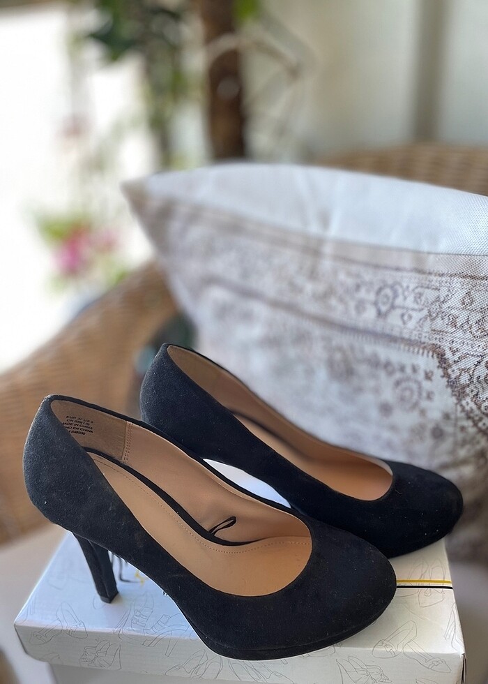 H&M marka 37 numara, 11 cm topuk, siyah, süet, yuvarlak burun abiye ayakkabı. Sadece bikaç kullanıldı, tertemiz. #ayakkabı