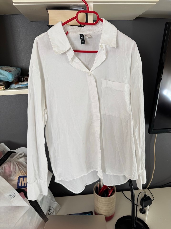 H&M Kadın Beyaz Pamuklu Düğmeli Gömlek