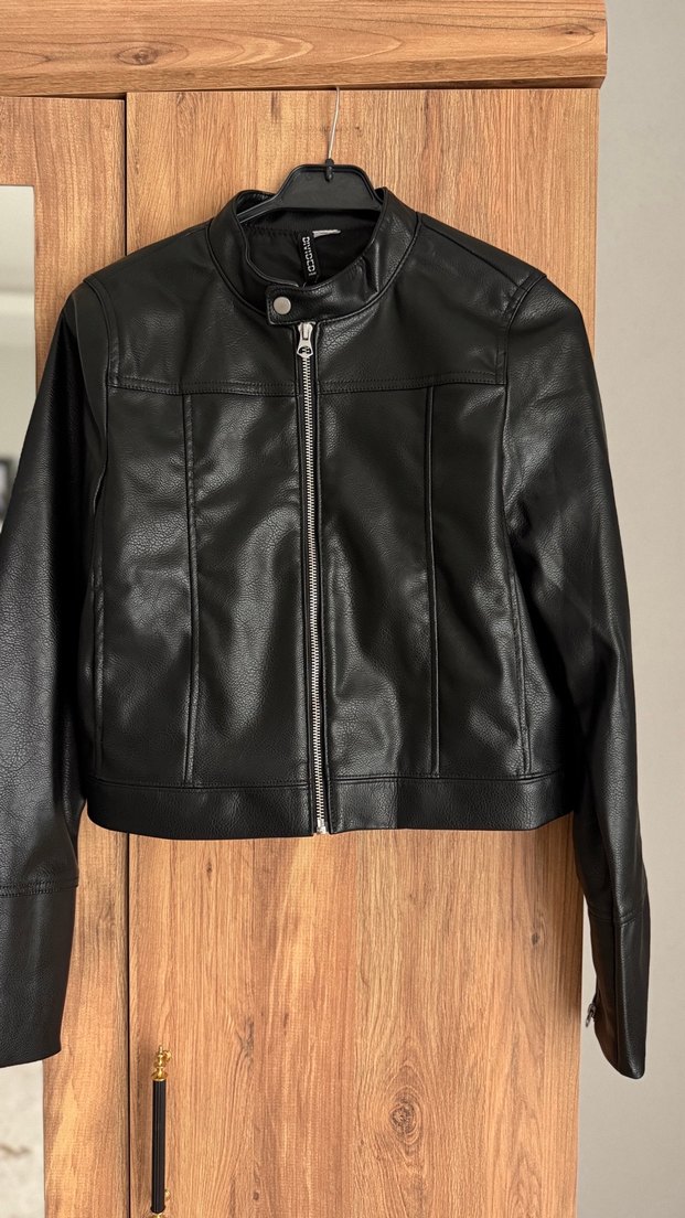 Fermuarlı, siyah deri ceket. Yeni etiketli sorunsuz