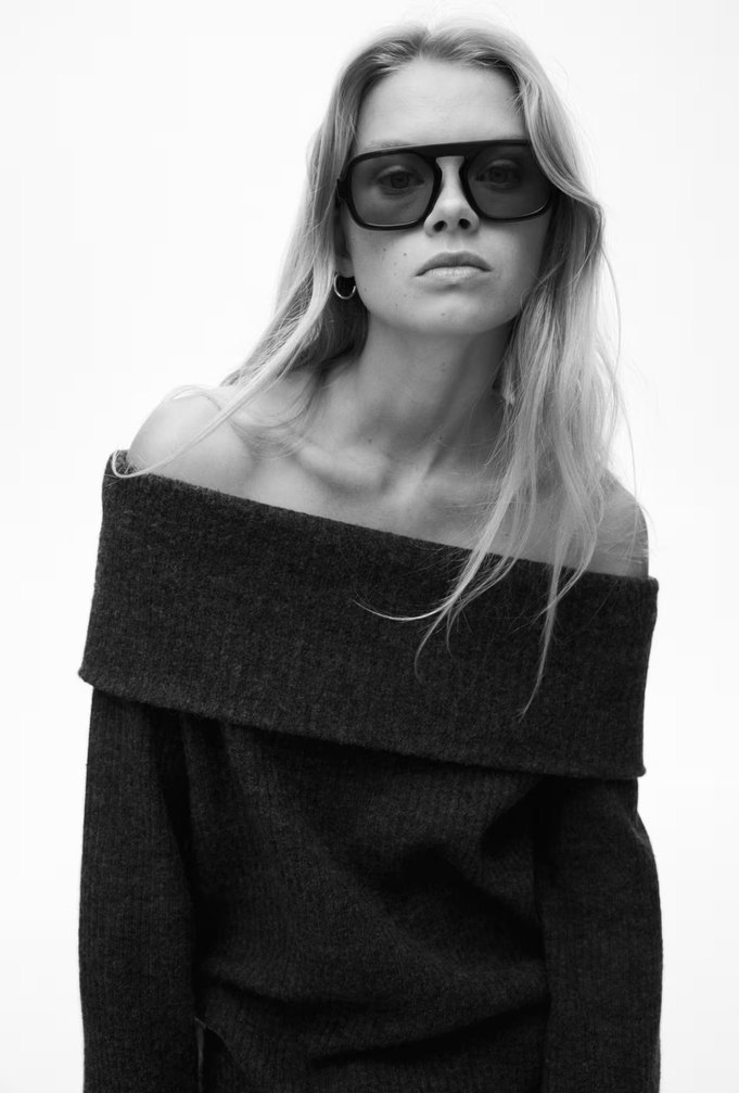 kayık yaka, uzun kollu, kısa ve bol kesim kadın kazak. Minimalist ve çağdaş tarzıyla rahat şıklık sunar.