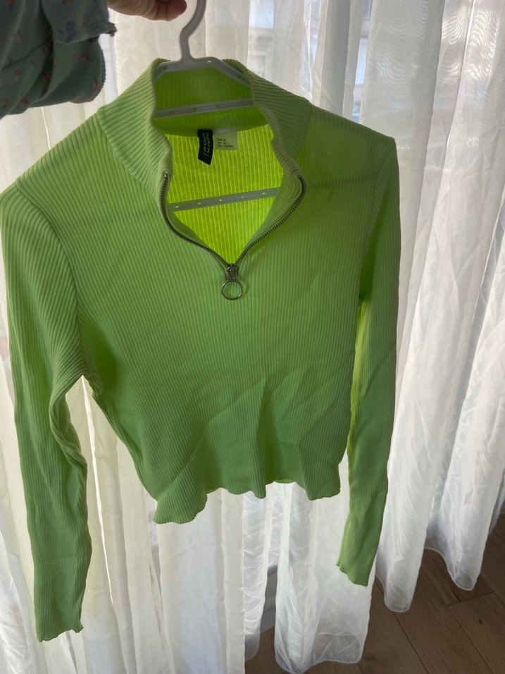 Fermuarlı yüksek yakalı, uzun kollu, yeşil neon tonlarda