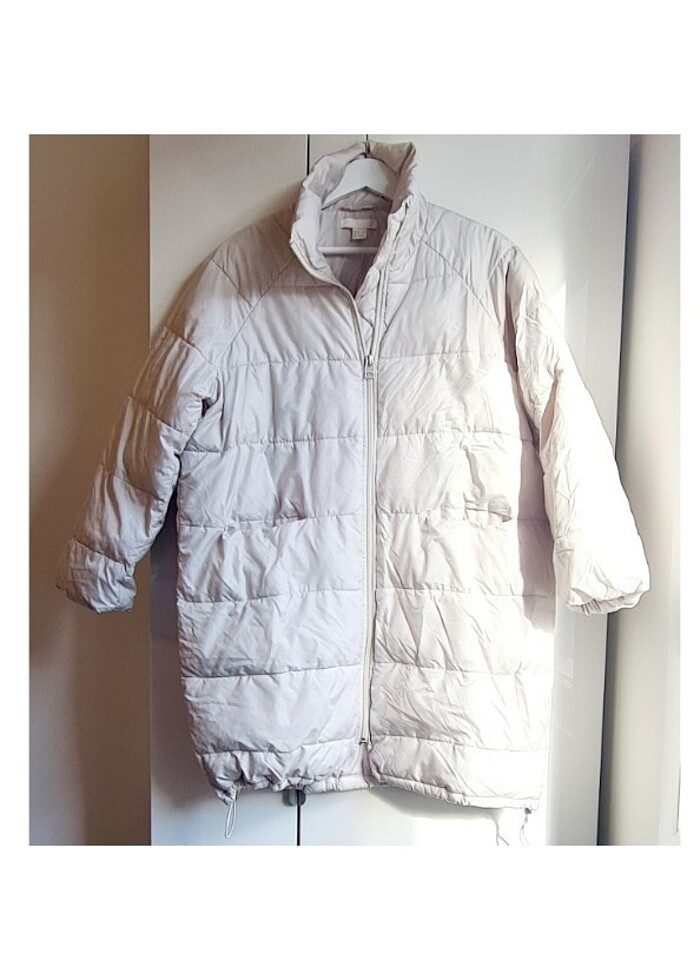 H&M Kadın Kapitone kırık beyaz pofuduk kışlık mont. Oversize büyükçedir, 36 veya 38 beden birisi de rahatlıkla tercih edebilir, 34 beden olduğuna bakmayın. Kapuşonsuzdur, sıcak tutar. Alt etek kısmında her iki yanda lastik sabitlenebilir büzgüleri var, üşüyünce iyice büzmek harika oluyor. Sağ cebinin olduğu yerde minik bir dikişte gevşeme var, fotoğrafladım ve fiyata yansıttım. Çok iyi durumda, lekesiz ve temiz. 158 boyum, dizimin biraz üstüne geliyor. H&M'de benzerleri 900 - 1000 TL civarında. #hm #kapitone #mont #kışlık #kislik #zara #mango #bershka #stradivarius #ipekyol #twist #palto #kaban
