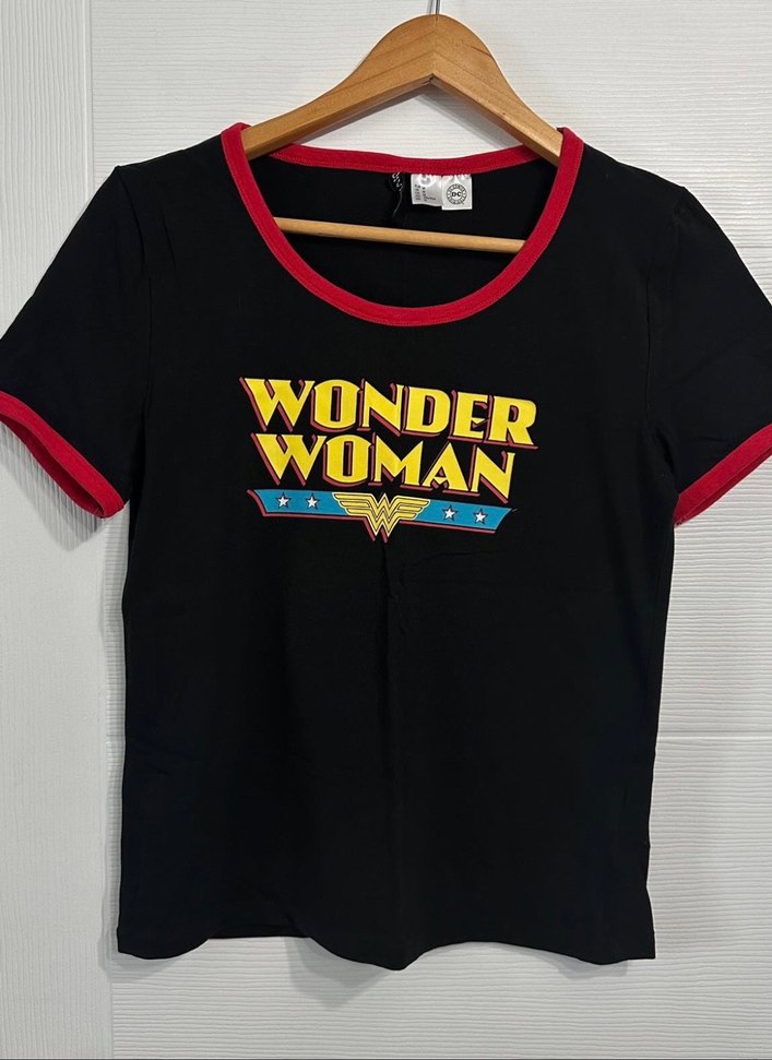 H&M Kadın Siyah Wonder Woman Baskılı Tişört