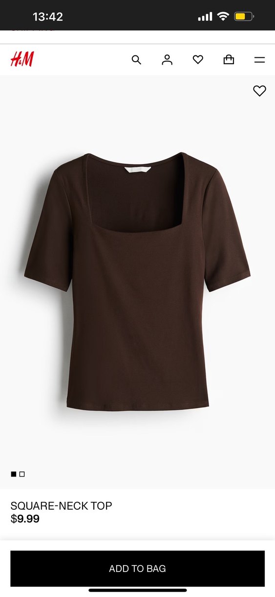 H&M Kahverengi kare yaka Kısa Kollu Bluz
