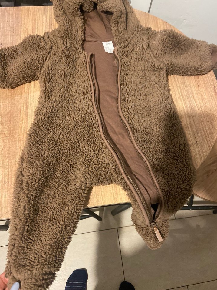 Kahverengi, yumuşak kürklü kumaştan, kapüşonlu bebek tulumu. Önü fermuarlı ve desensiz sade tasarıma sahip. ❄️ 1/2 ay için uygun (seçenek olmadığı için 3 ay işaretledim ) iyice inceleyin iade kabul etmiyorum