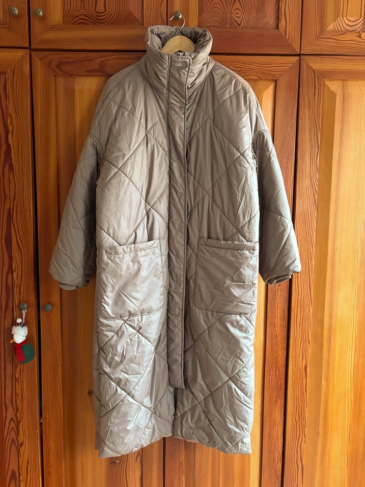 H&M kapitone vizon rengi maksi mont. Sıcacık tutar. Bedeni S ama M bedene kadar olur geniş kesim. Tertemiz durumda.