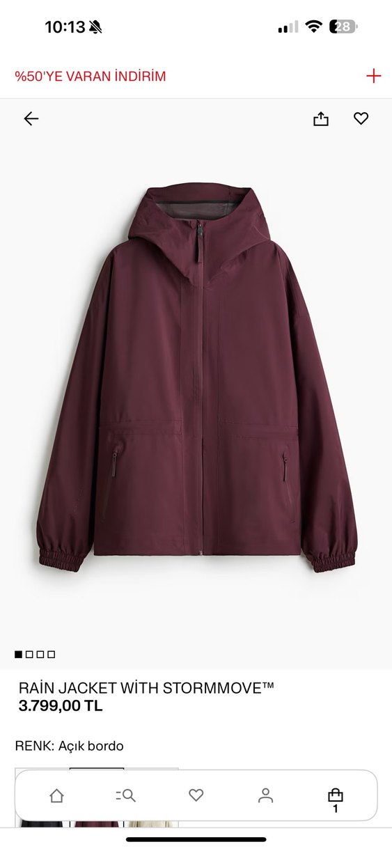 H& m Kapüşonlu Fermuarlı Yağmurluk