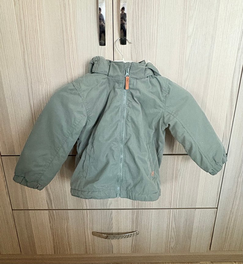 Kapüşonlu ve fermuarlı, içi tüylü mont. Kapüşonu çıkarılabilir. Bir kere giyildi.