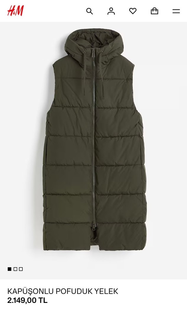 H&M KAPÜŞONLU HAKİ POFUDUK YELEK SIFIR ÜRÜN HİÇ KULLANILMAMIŞTIR ETİKETİ YOKTUR SADECE İki Kol Arası 64 cm Uzunluk 104 cm