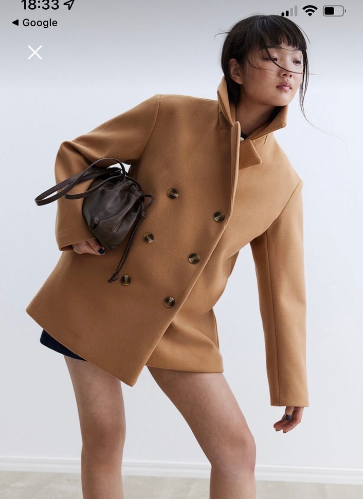 H&m keçeli kruvaze kısa koyu bej kaban