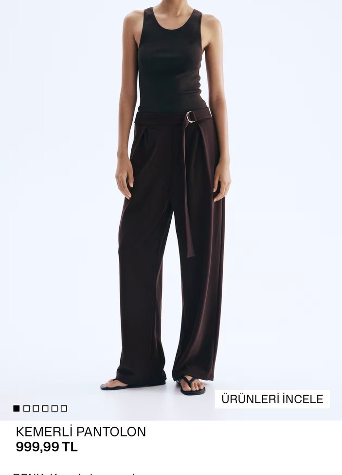 H&M Kemerli Kahverengi Kadın Kumaş Pantolon