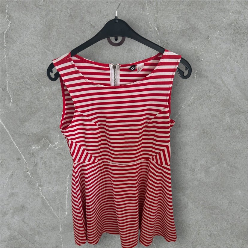 H&M Kırmızı Beyaz Çizgili Kolsuz Elbise