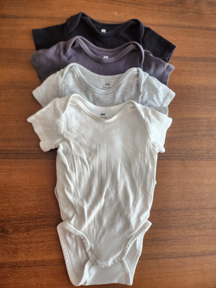 H&M marka pastel renklerde 4 adet 4-6 ay etiketli pamuklu kumaştan kısa kollu body zıbınlar kısa süre temiz kullanıldı. Sadece beyaz olanda belirsiz küçük lekeler mevcut görsellere ekledim ancak belli olmuyor. Organik bebek sabunu ile makinede yıkandı ve paketlendi. Sayfamdaki diğer bebek ürünlerini de inceleyebilirsiniz.