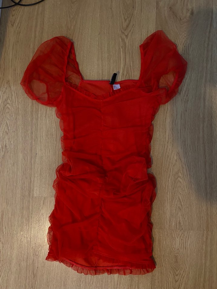 H&M Kısa Kollu Kırmızı Mini Elbise