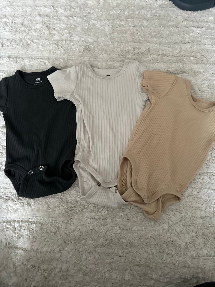H&M Kısa Kollu Pamuklu Bebek Body Zıbın Üçlü Set