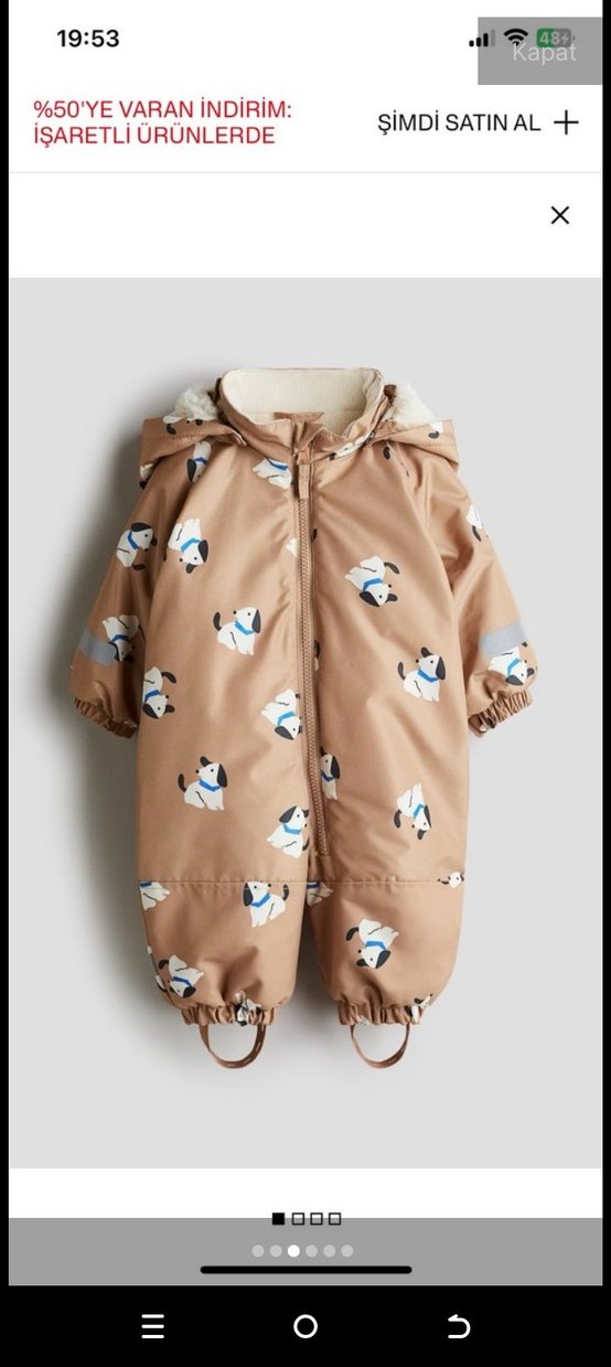 Kürklü kapüşonlu, bej renkli kız bebek tulumu. Sevimli köpek desenleri ve yumuşak kumaş ile rahatlık sağlar. Deneme amaçlı giyildi olmadı. 6-9 ay.