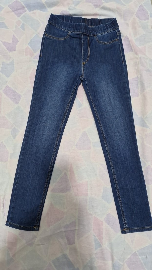 H&M kız çocuk 6/7 yaş beli lastikli dar streç Kot Pantolon Sıfır ayarında, yepyeni Lacivert renk