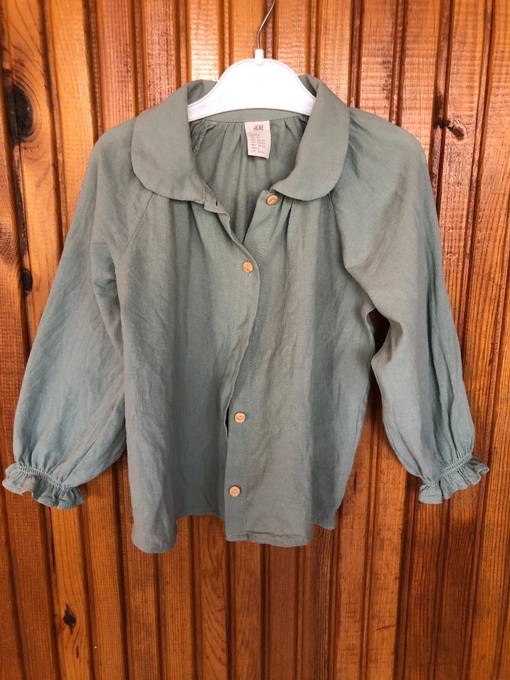 H&M marka Çağla yeşili uzun kollu önden düğmeli polo yaka pamuklu bilek kısmı lastikli 1,5-2 yaşa uygun kız çocuk gömlek