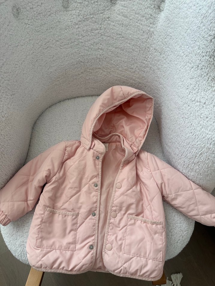 Kız çocukları için kapüşonlu, düğmeli ve iki ön cepli pembe, fitted mont. Yumuşak ve sıcak kumaştan yapılmıştır, rahatlık sağlar.sonbahar ve ilkbahar ayları için daha uygun