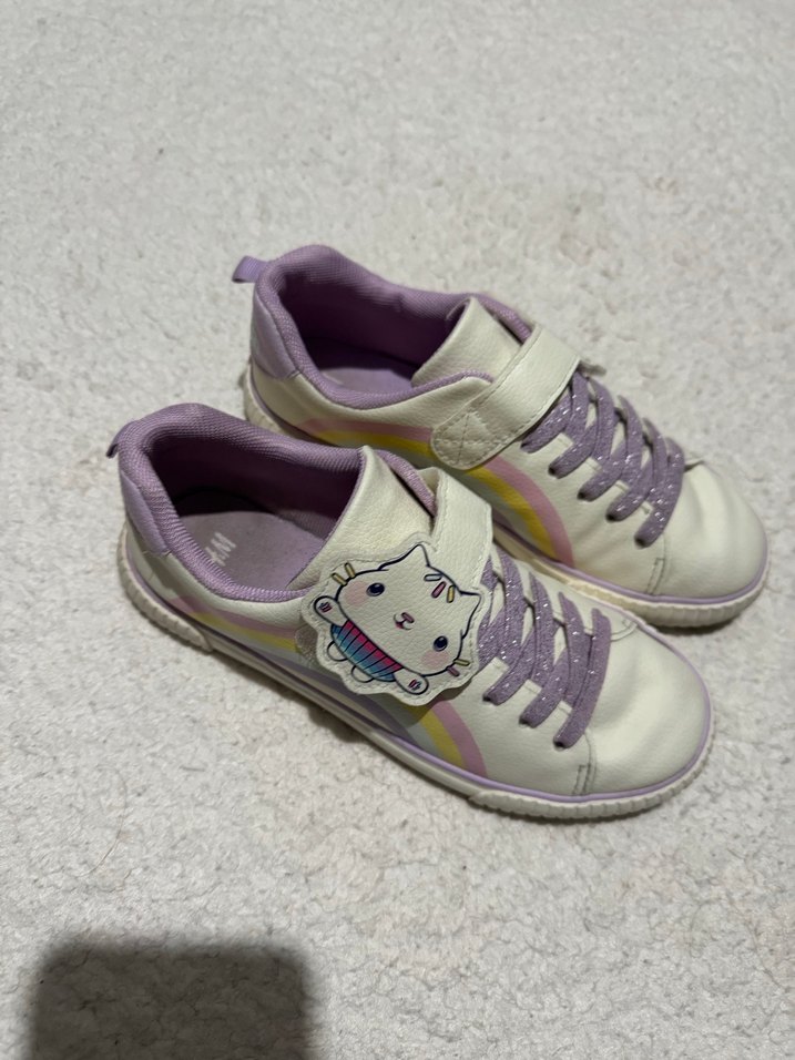 H&M Mor bağcıklı, cırt cırtlı ve lastik tabanlı kız çocuk spor ayakkabısı, pastel tonlarda ve batik desenli. Rahat ve şık sokak stili için uygun.
