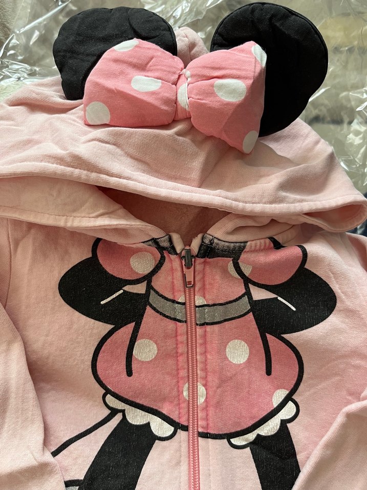 Pembe kapüşonlu kız çocuk sweatshirt, fermuarlı ve baskılıdır. Uzun kollu, vücuda oturan kesim ve yumuşak kumaş kullanılmıştır. Kapüşonda kulak ve fiyonk detayı vardır. Temizdir. Sadece kolunda küçük bir kalem lekesi vardır. #hm #hmçocuk