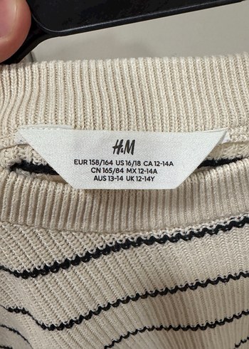 Bej renkte, siyah çizgili ve rahat dokulu H&M kız çocukkazak. 13/14 yaş