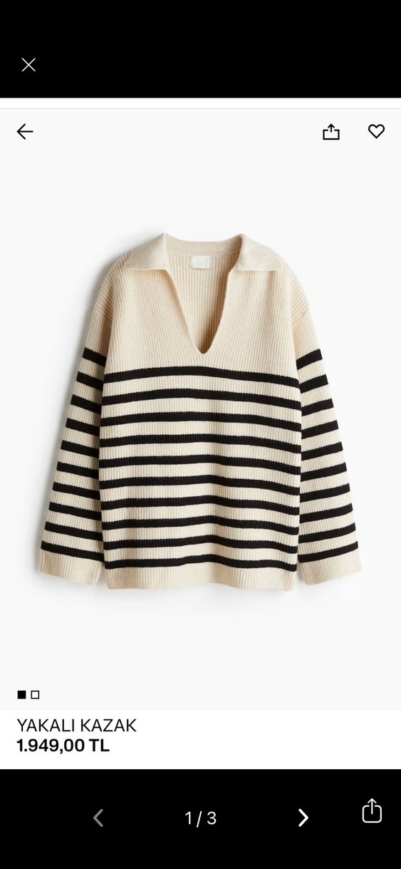 Bej renkli, siyah çizgili kadın triko kazak. Uzun kollu, kayık yaka ve rahat kesim. Yün malzemeden, günlük kullanıma uygun. asiei sicak tutuyo 0 urun birkac kere giydim sitesinde 2bin tl