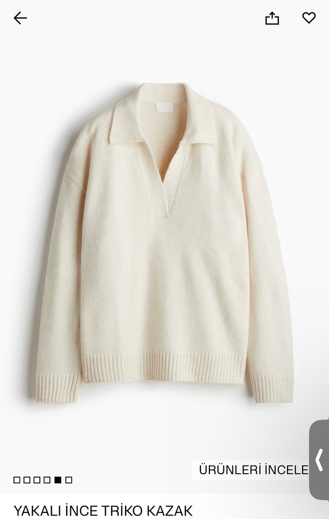 H&M Krem Yünlü Polo Yaka Kadın Kazak