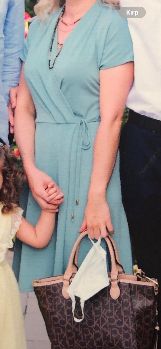 2-3 kez kullanıldı. Resimde bir 64 boy 58 kg durusu görünmektedir tertemiz duruyor. 60 64 kg’a kadar çok rahat olur kumaşı çok esnek kendinden hafif parlak. Etek kısmında 3.04 yerinde iplik gördüm ama kesinlikle belli belirsiz gözükmüyor