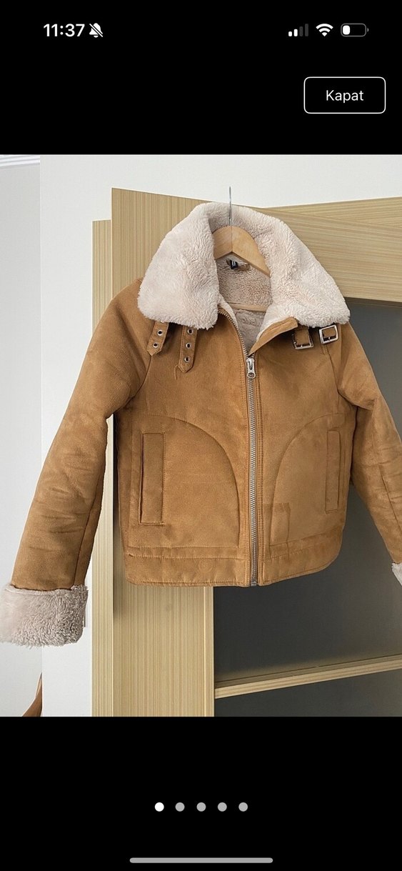 Kahverengi süet ceket, kürk detaylı, kısa boy ve regular fit. Küçük geldiği için satıyorum Xs beden
