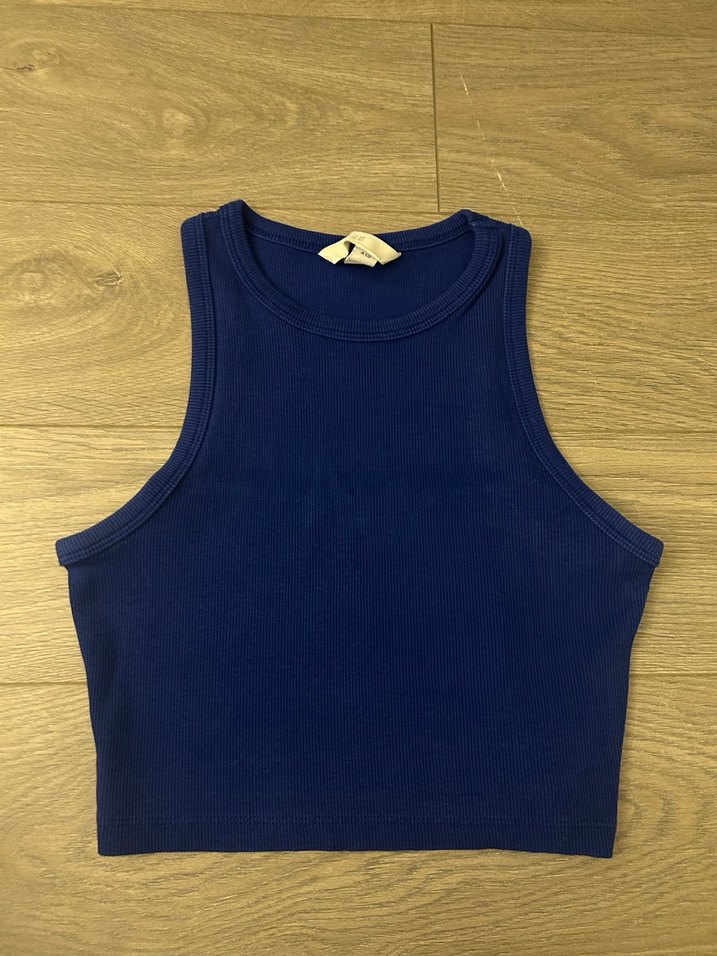 H&M marka, lacivert renk, crop model büstiyer. Şık ve rahat kombinler için ideal.