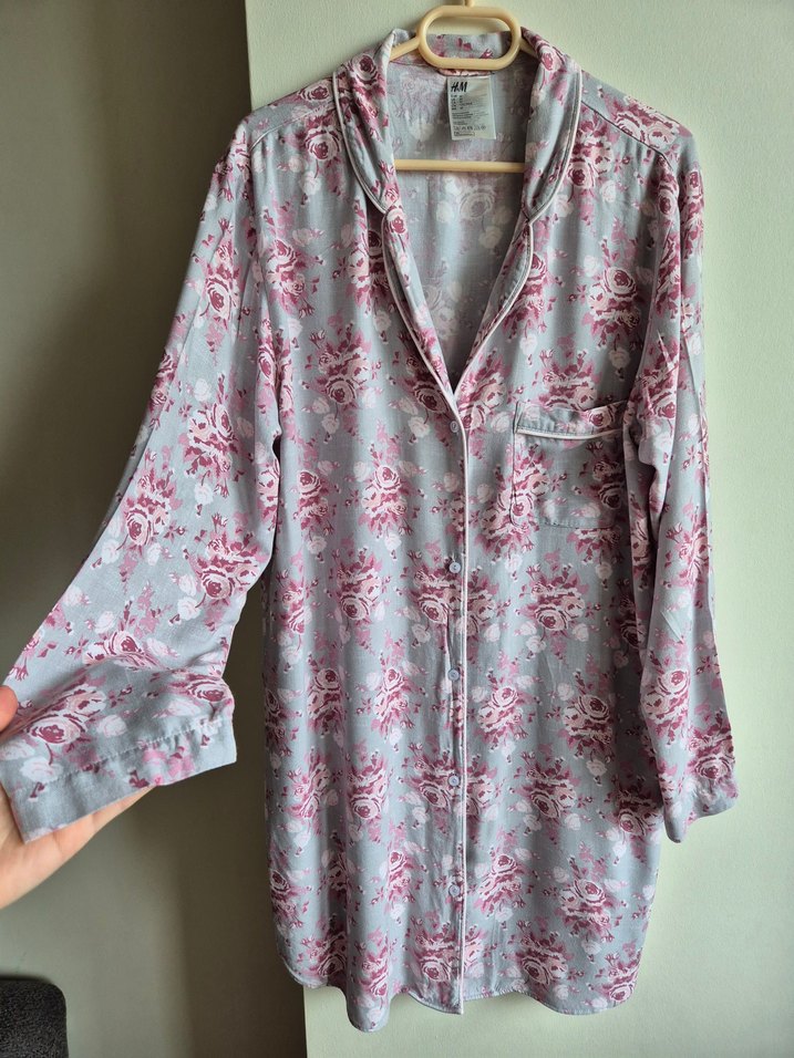 H&M marka, çok tatlı çiçek desenli, düğmeli model gecelik / ev elbisesi. Kumaşı hafif ve rahat, hem uyurken hem ev içinde giymek için çok konforlu. Yumuşacık dokulu, ferah ve şık bir parça 1 kere kullanildi kusuru yok. boy 87 cm iki koltuk arasi 54 cm.