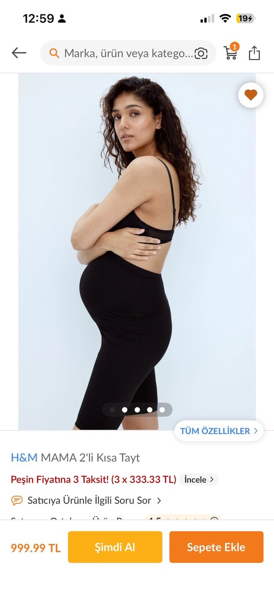H&M MAMA 2'li Siyah kısa tayt