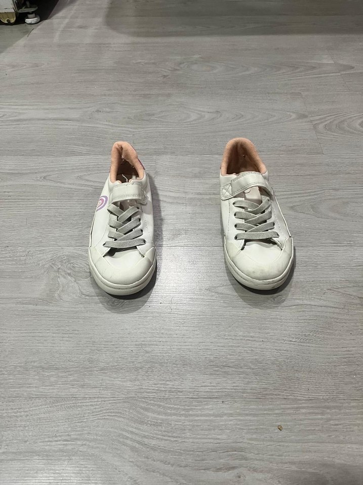 Beyaz, pastel tonlu tie-dye desenli kız çocuk sneakers, cırt cırtlı ve kauçuk tabanlı, sokak stili için uygun.