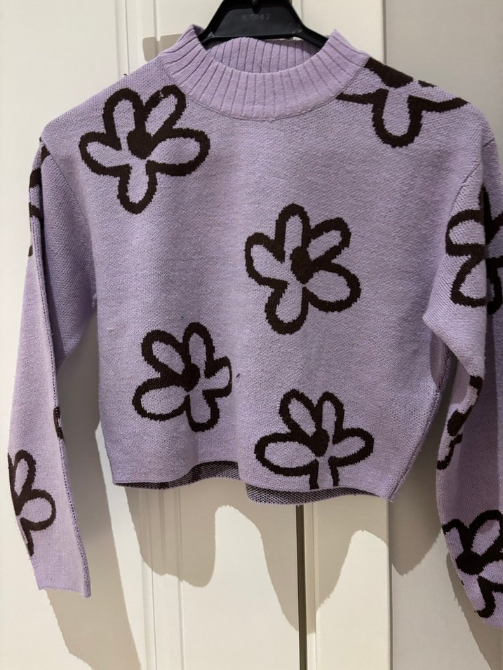 H&M marka Mor Çiçek Desenli Örgü Kazak