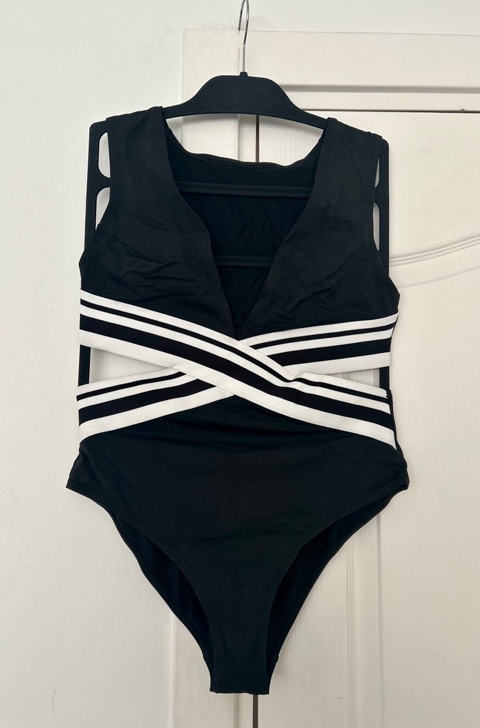 H&M Marka Siyah Beyaz Bant Detaylı Kadın Mayo