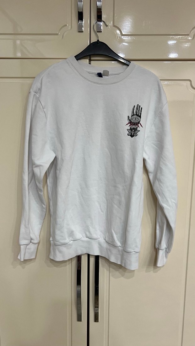 Uzun kollu ve yuvarlak yakalı beyaz sweatshirt, yumuşak ve sıcak kumaştan, bol kesim. Önünde baskılı desenle günlük kullanıma uygun rahat stil sunar.