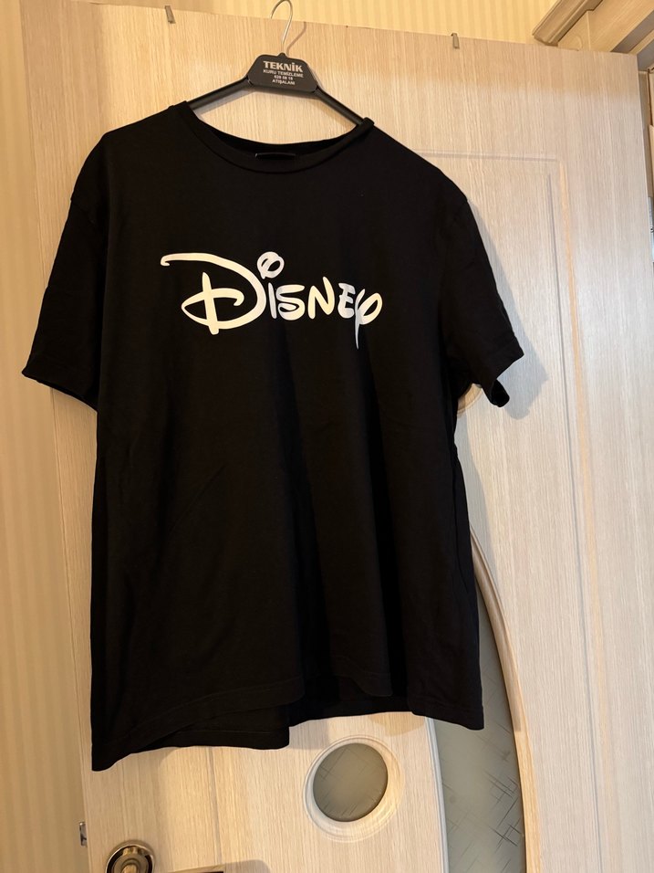 Pamuklu, kısa kollu, bol kesim siyah tişört. Yuvarlak yaka ve baskılı Disney logosu ile günlük rahat şıklık sunar. Unisex bir tshirt olup, 2 kez giyilmiş ve temizlenmiştir. Alana şans getirsin♥️