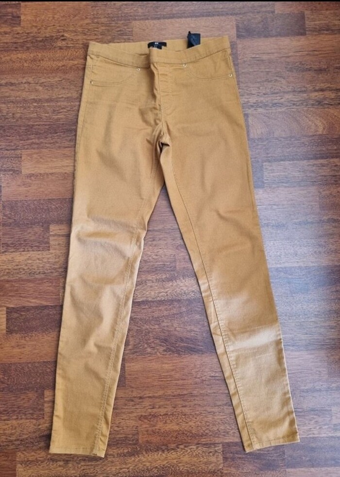 Renk hardal. Beden 38. Dar kesim. Beli lastikli. 36-38 bedene uyumlu. Az kullanılmış,defosu yok.