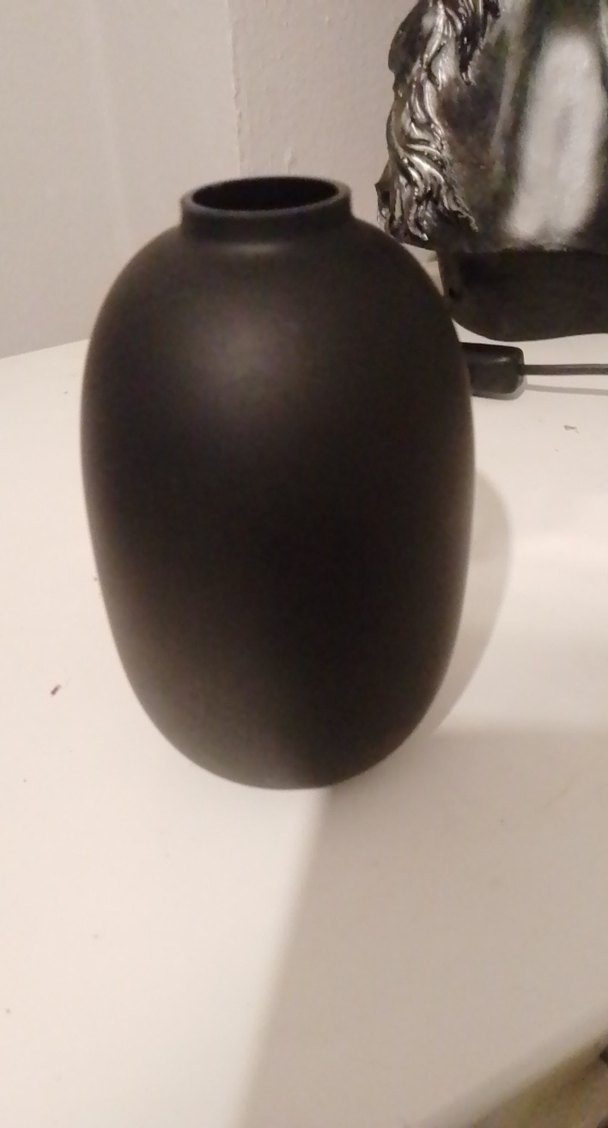 H&M. markaMat siyah seramikten yapılmış, pürüzsüz ve yuvarlak şekilli dekoratif vazo.