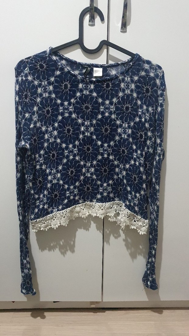 H&M Mavi Dantel Detaylı Kazak