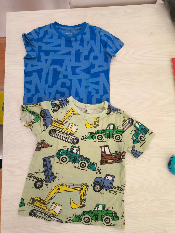 H&m ve mavi marka 5-6 yaş Renkli baskılı, kısa kollu erkek çocuk tişörtleri, fitted kesim ve yuvarlak yakalı.