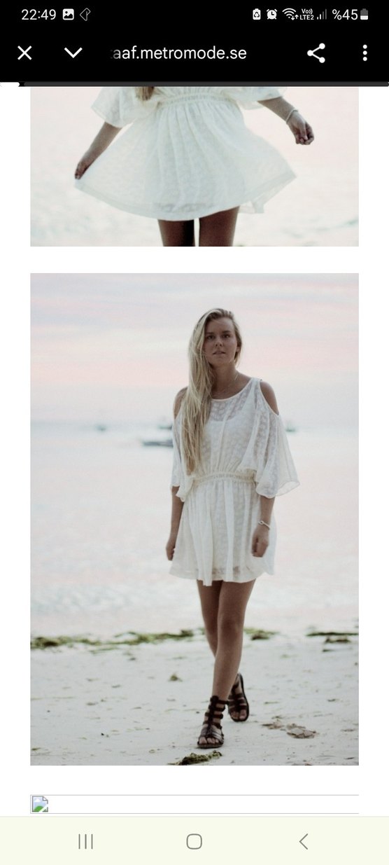 Beyaz bohem mini elbise, pamuklu ve hafif transparan dokuda, kısa kollu ve omuzları açık tasarıma sahiptir. Rahat kesimiyle dış mekan kullanımı için uygundur.