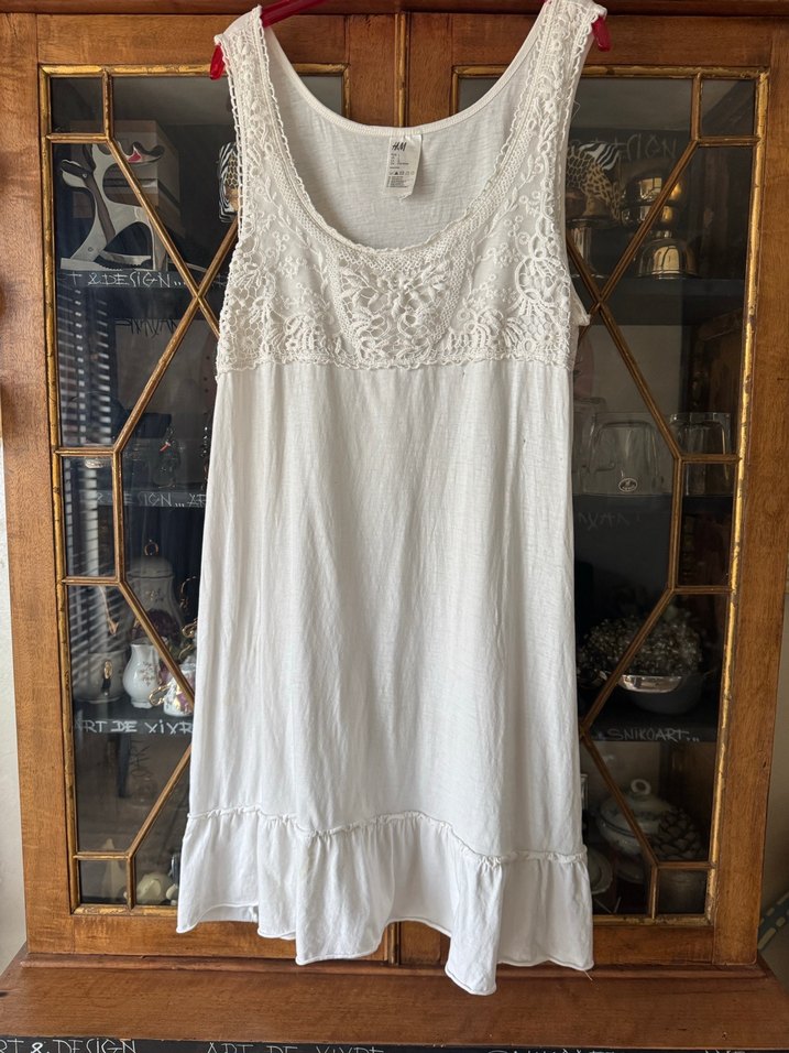 Nakışlı detaylara sahip, askısız doğal beyaz yüzde yüz pamuklu gecelik. Geniş kesimi, yuvarlak yaka ve midi boyuyla rahat kullanım sağlar. Bir kaç küçük delik var (güve) ve bir kaç acık küçük leke. Satın aldım Isviçrede 25 CHF. İndirimli yüzde 90 satıyorum.