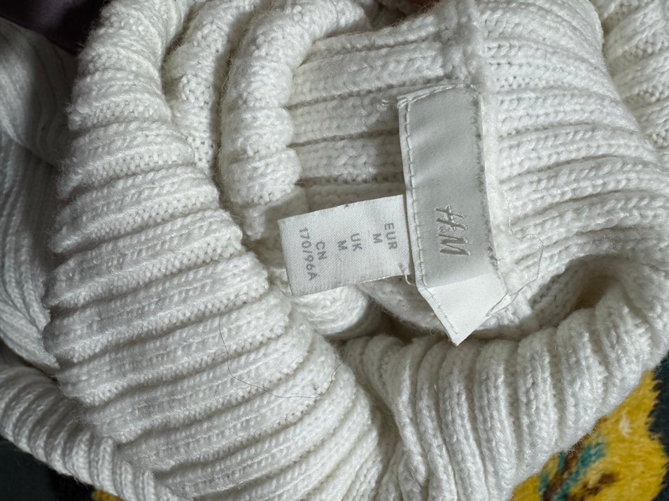 H&M markalı, beyaz ve gri renklerde nakışlı desenli, yumuşak ve rahat kumaştan yapılmış bebek önlüğü.