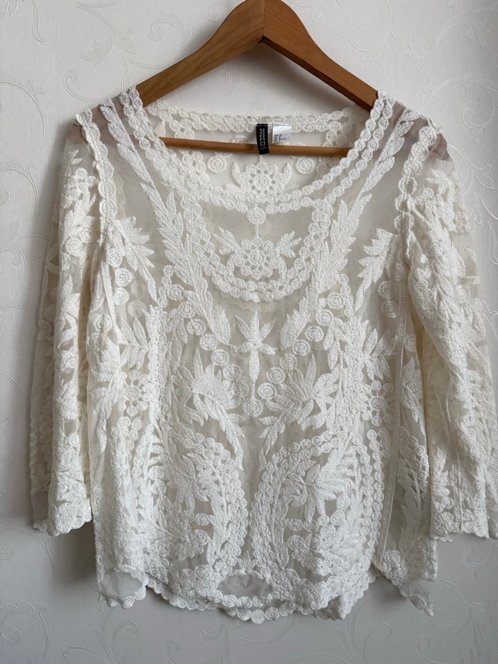 # H&M #dantel #bluz. #Krem #Ekru rengi #pamuklu #dantel #38 beden #YENİ kusursuz. Mükemmel İki kol altı arası 46 cm. Boy 56 cm. Kol boyu 48 cm Truvakar kol #H&M #zara #yargıcı #mango #zara #herry #network #massimo #fabrika #beymen #vakko #ipekyol #twist #stradivarius #bershka # pull&bear #gap #marks&spencer #fabrika #yargıcı #massimo #pull&bear #mavi #polo #benetton # mango #düğün #nişan #tüzün #Max Mara #burberry #chanel